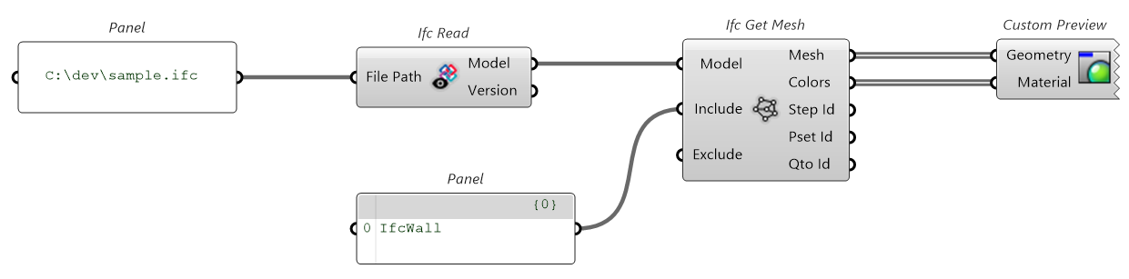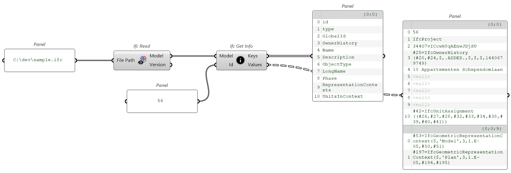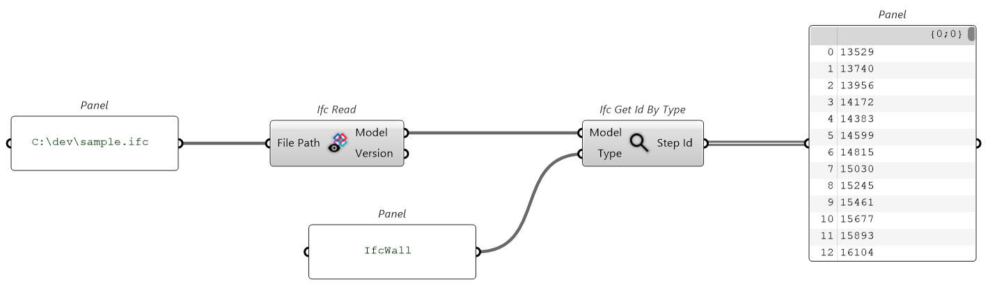 Let' get the elements of type IfcWall. In this case we get a list of 934 step ids, that we could feed in the Ifc Get Info component to get the corresponding attributes (be careful about performance when you provide a long list of step ids).